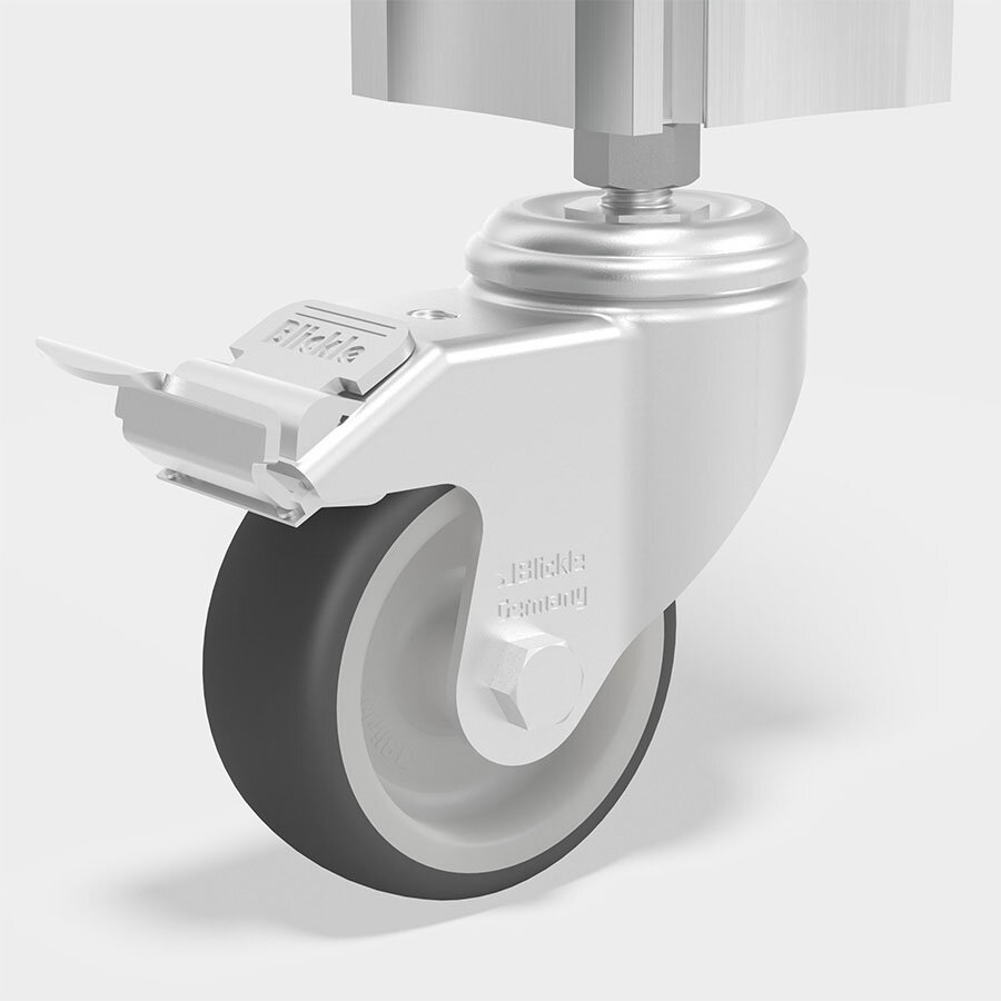 The high-quality castors for the Siegmund workbench significantly improve the mobility and flexibility of your working environment. The castors are specially designed for use in workspaces. All four castors are steerable, allowing maximum mobility and easy maneuverability of the workbench - ideal for tight spaces and frequent moving. Each castor is also equipped with a locking brake for added safety and stability, ensuring your workbench stays in place even during intensive use.