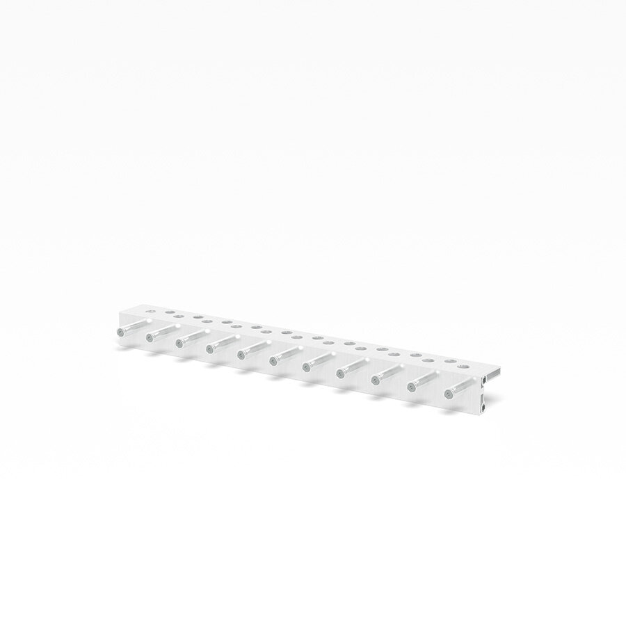 Mit einer Länge von 575 mm, einer Breite von 55 mm und einer Höhe von 52 mm bietet die Halterung ausreichend Platz für Zwingen, Bolzen und Winkel. Das Gewicht von 1,3 kg sorgt für eine stabile Befestigung, während die kompakte Bauweise die Nutzung nicht einschränkt.